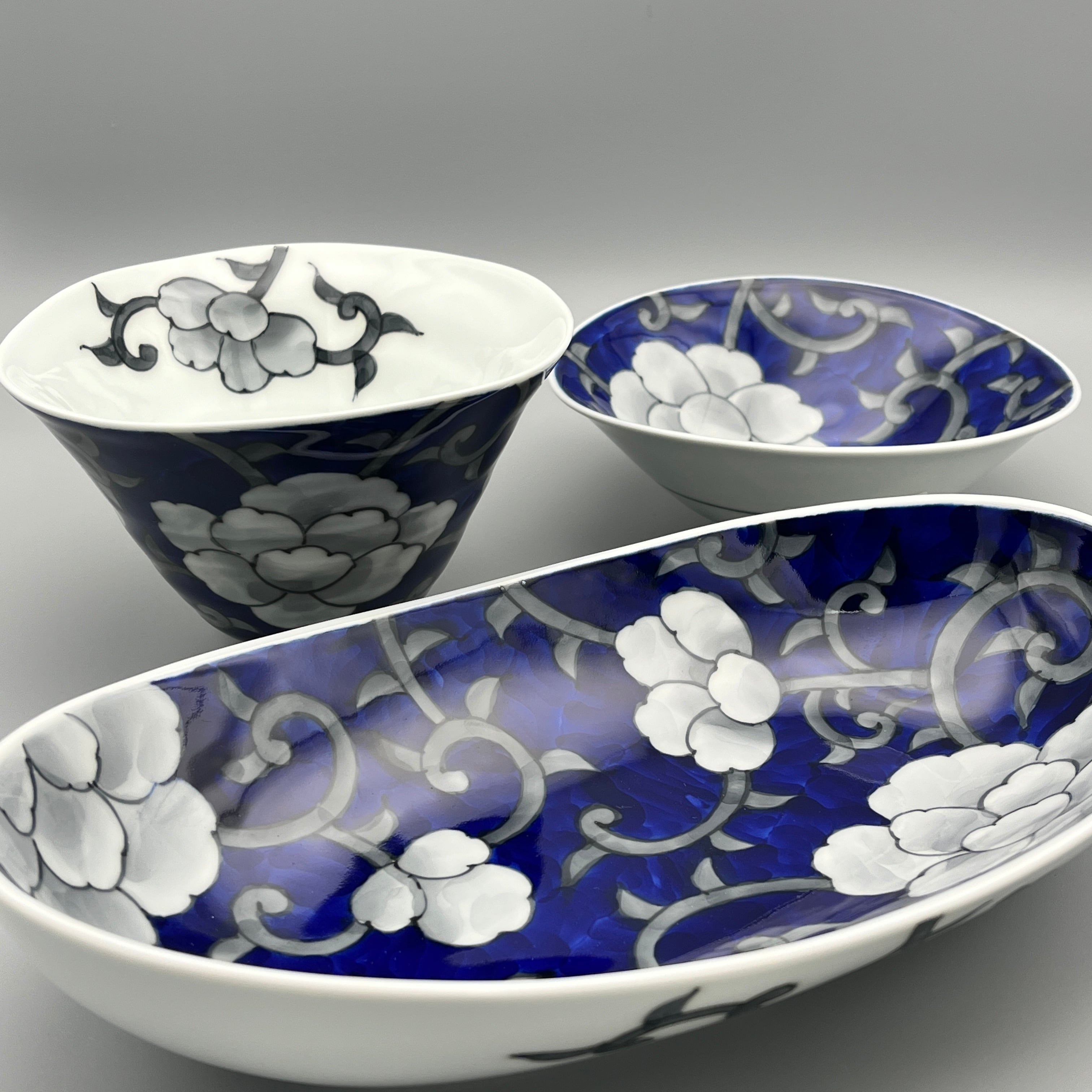 染付の技法にこだわり、呉須と薄墨の濃淡で仕上げました。